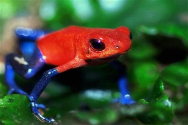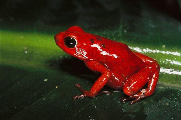 红带箭毒蛙是巨毒蛙,其一次喷射出的毒液可以杀死十个成年人。红带箭毒蛙之所以得名,是由于它们的身上有几条红色或者是黑色的条纹,呈带状并且较宽。红带箭毒蛙以红色为底色,但是脚趾是白色的。红色和白色都属于较为亮眼的颜色,两者相结合,远远看上去十分显眼。红带箭毒蛙是世界保护动物,同时也是濒危物种,它们颜色鲜艳。
