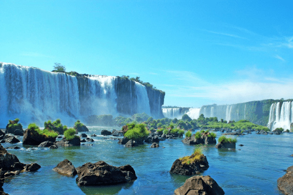 伊瓜苏大瀑布的宽度过长,使得水流总是会分成数百个细小的瀑布,据统计这里至少有275个小瀑布组成,因此也使得它的冲击力非常的强劲,可以达到每秒流出1.3万立方米的水量,几乎可以称之为世界上最大的瀑布之一,甚至被很多人称之为世界七大自然奇观之一。