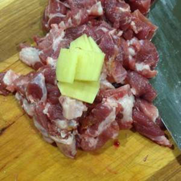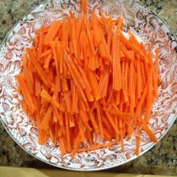 用料:胡萝卜一根、猪肉100克、酱油适量、盐适量、糖一小勺、姜7片。