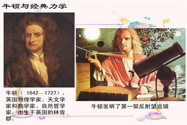 牛顿是很有名的物理学家,一生中做出了很多的贡献,发明了很多东西,比如万有引力、牛顿望远镜、微积分等等。牛顿的出现推动了社会的发展,验证了很多在之前无法解释的事情,牛顿的发明也推动了物理学和数学的发展。