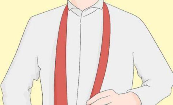 1、将领带反面朝外。宽端应放在右侧,窄端在左。
