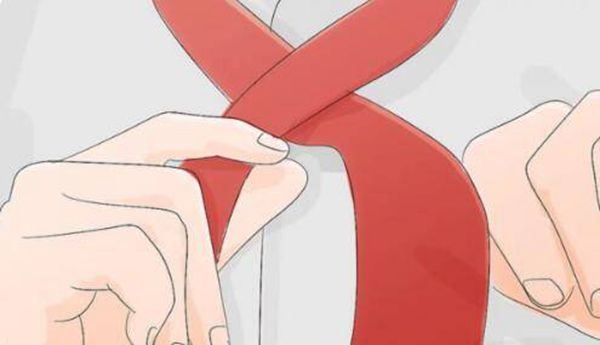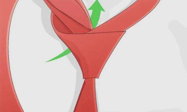 7、把宽端从上往下穿过前面的领带结。
