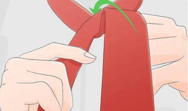 2、交迭摆放领带,宽端位于窄端之下。
